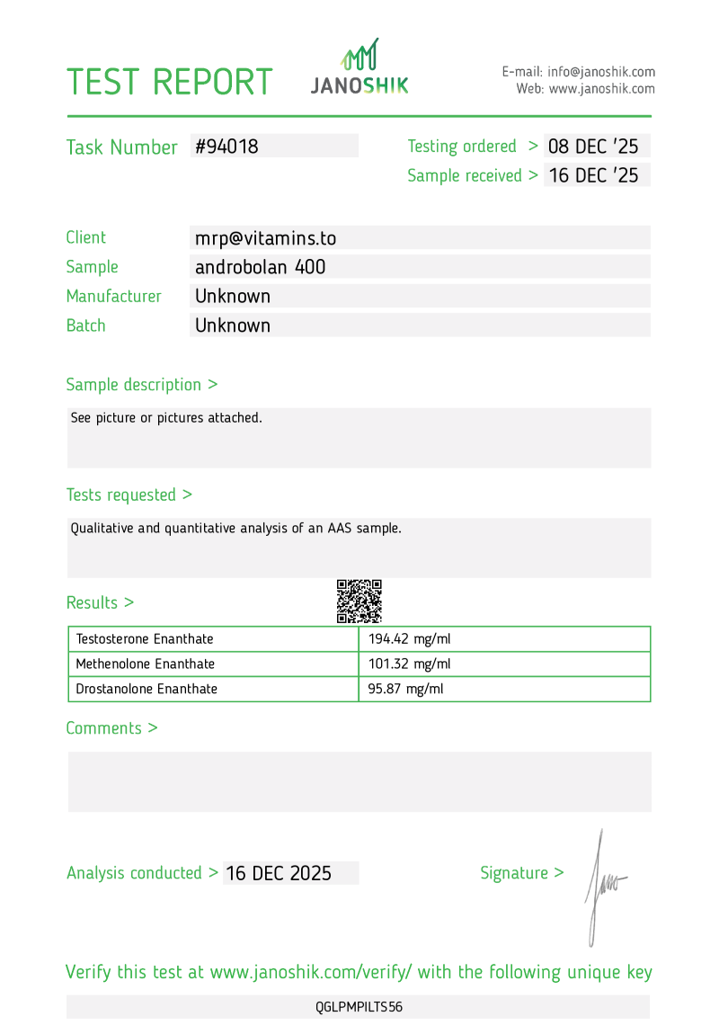 Test-Mast-Primo Formula - Lab test