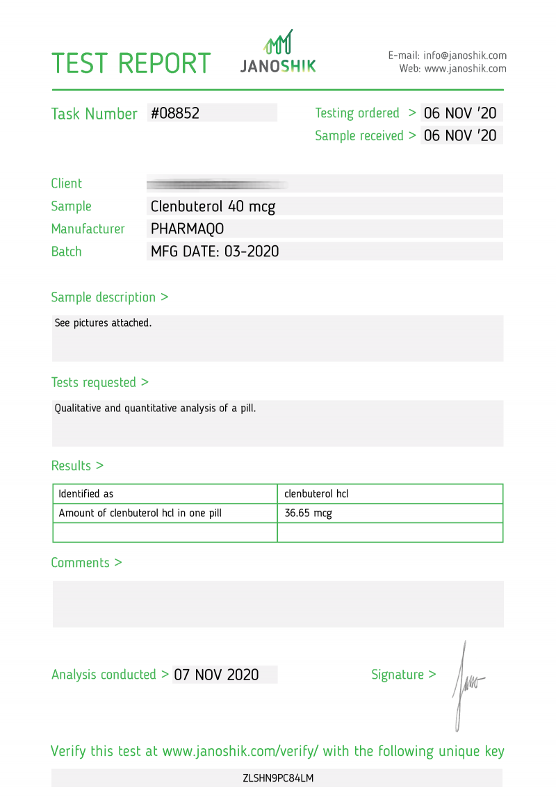 Clenbuterol 40 - Lab test