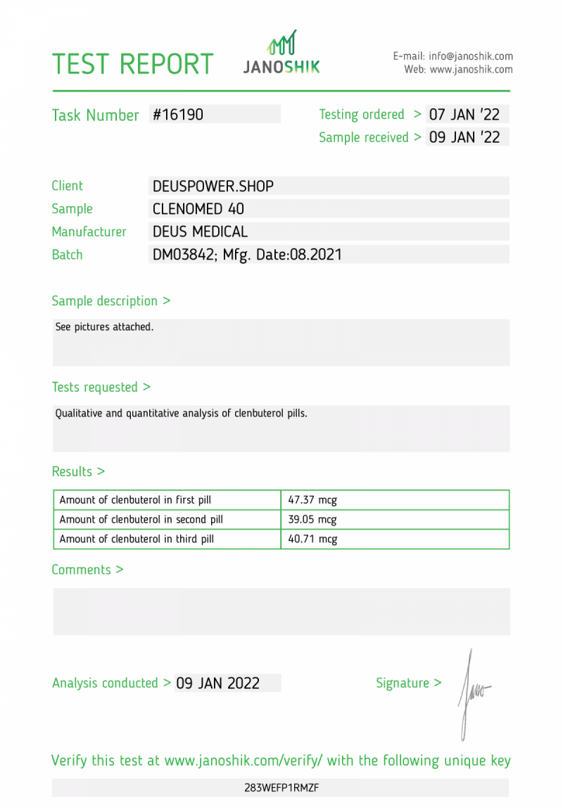 Clenomed 40 - Lab test
