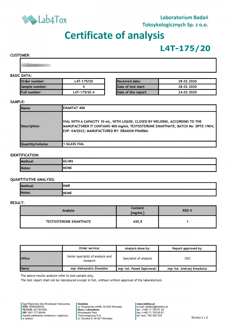 Enantat 400 - Lab test