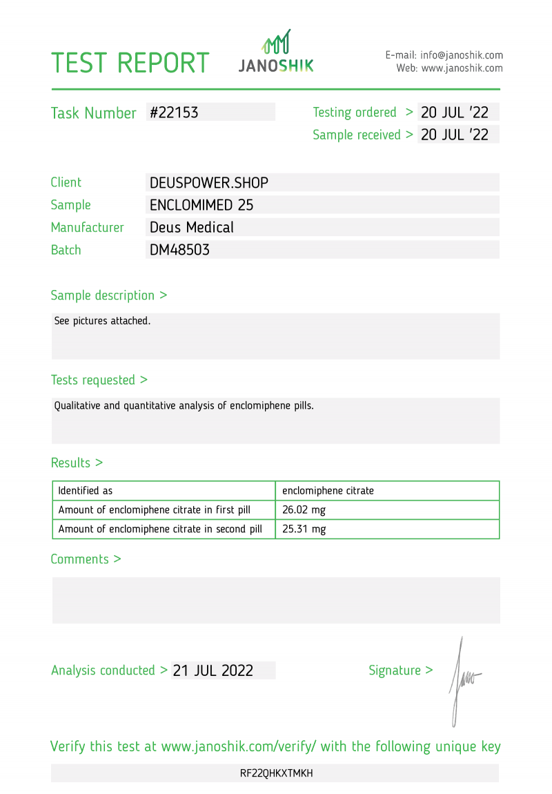 Enclomimed 25 - Lab test