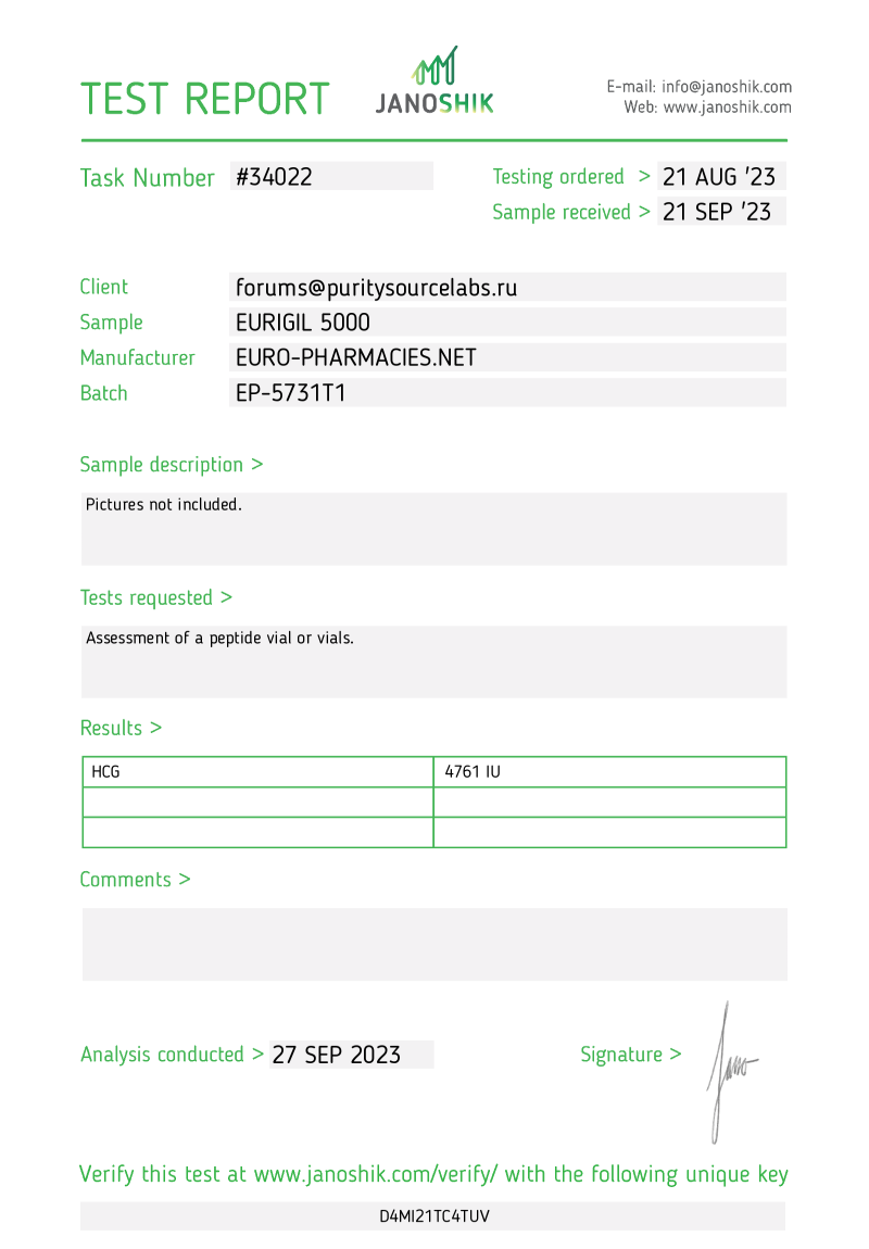 Eurigil (HCG) 5000IU Gold - Euro-Pharmacies - EU