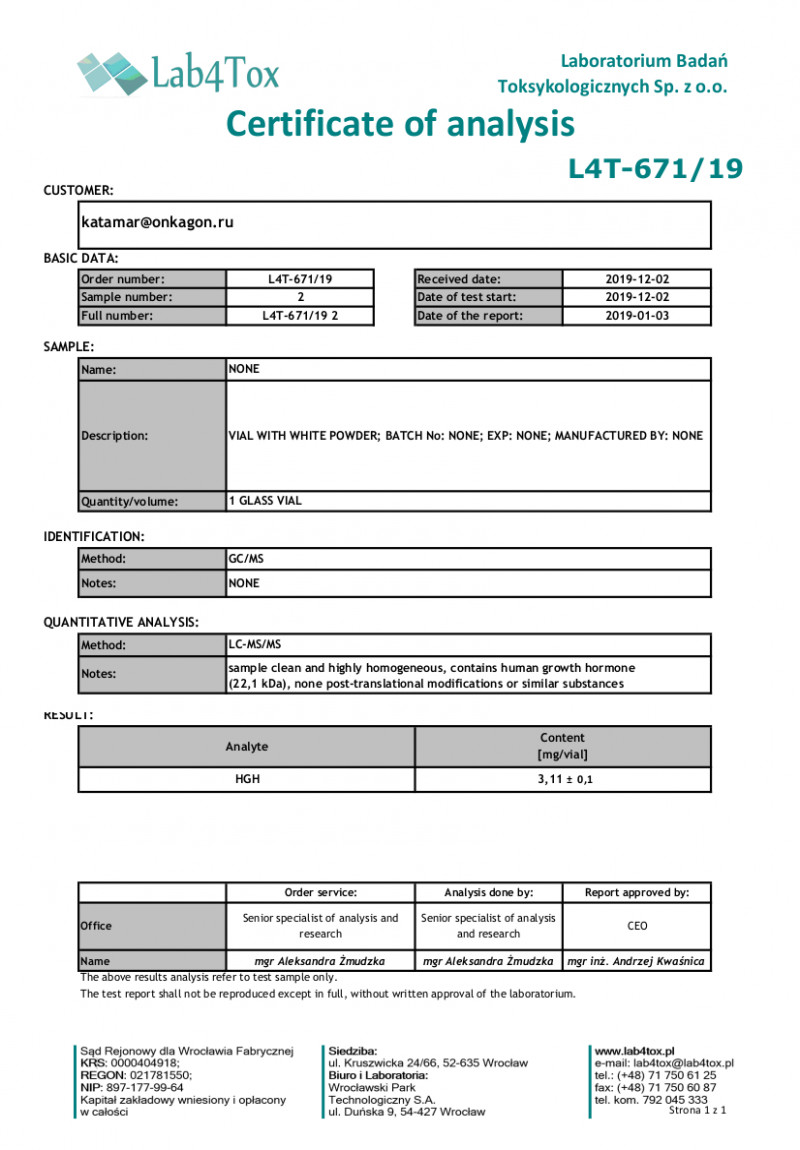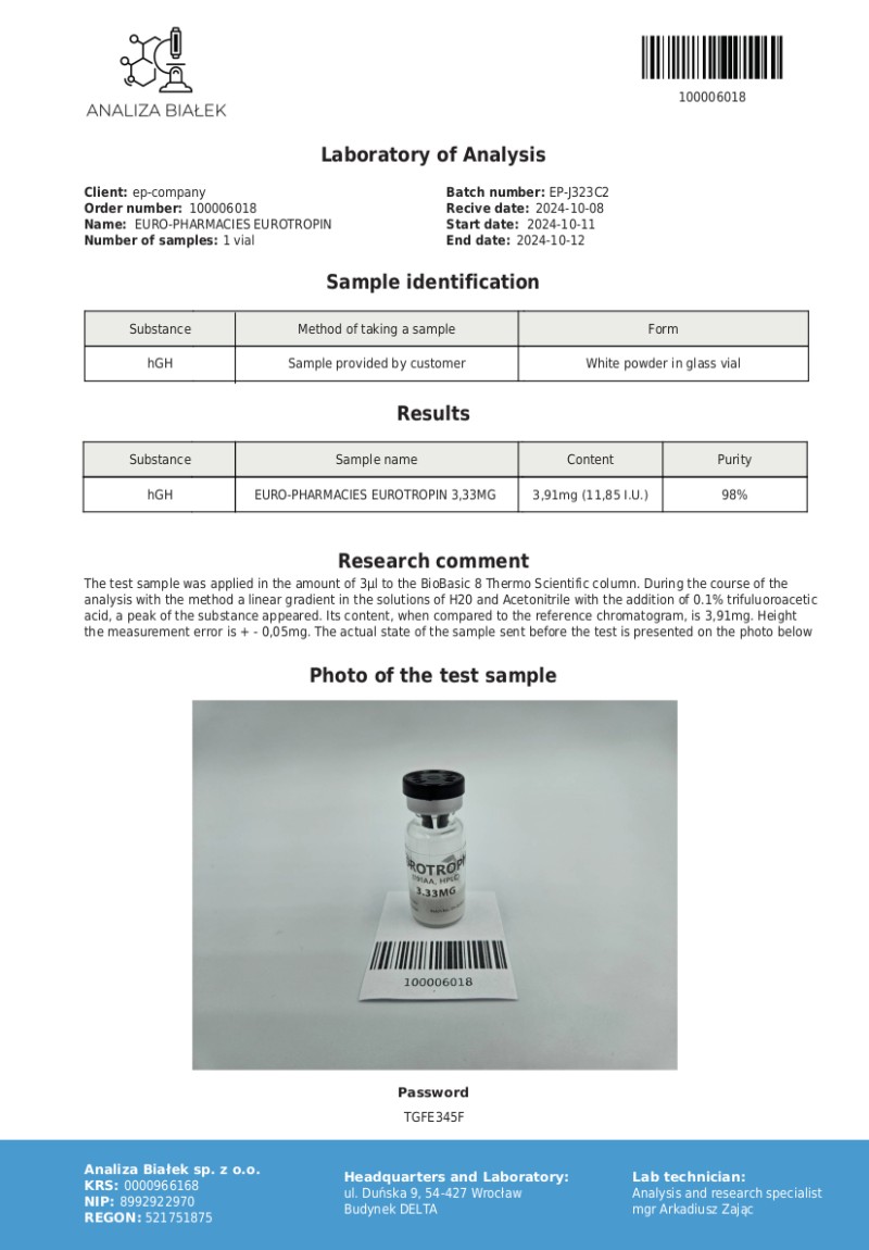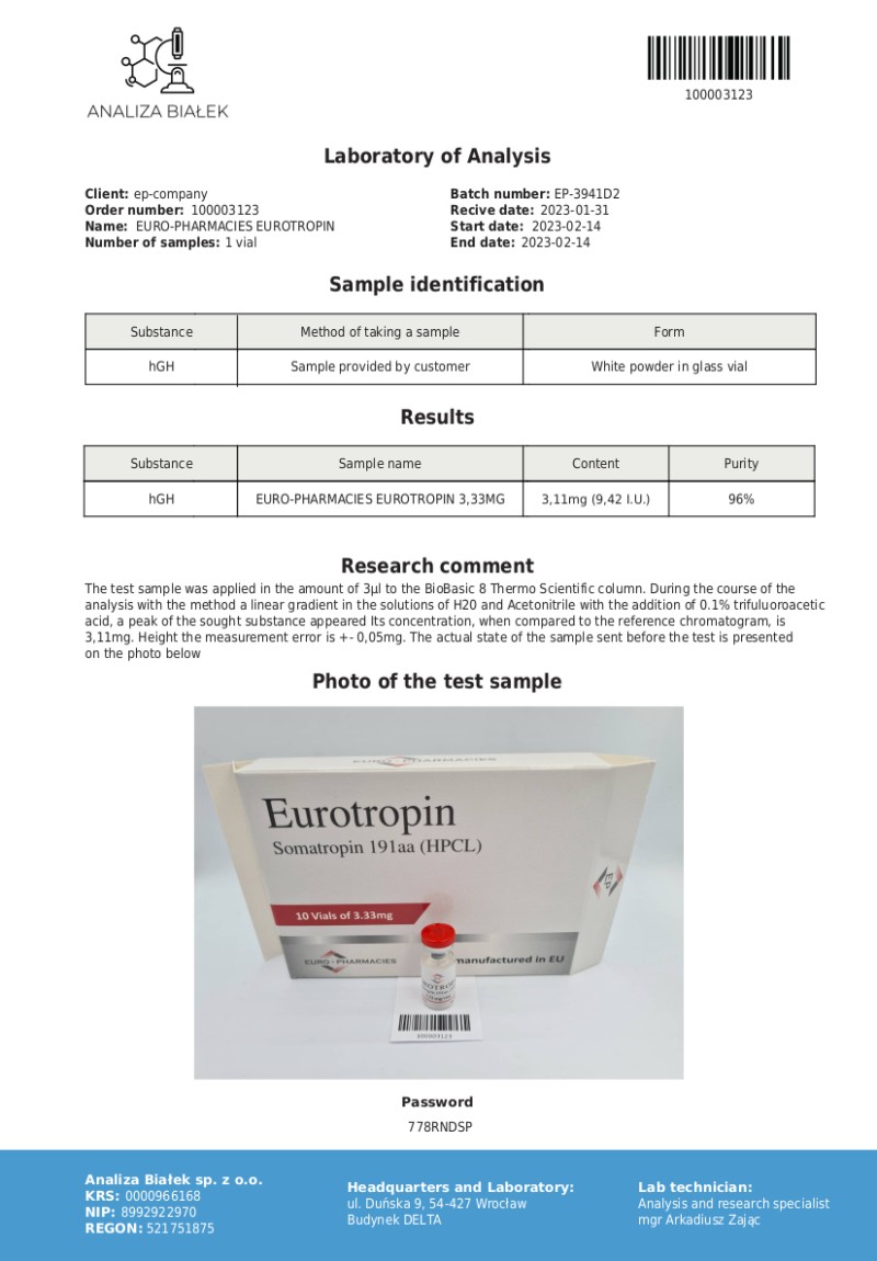 Eurotropin HGH 100IU - Lab test