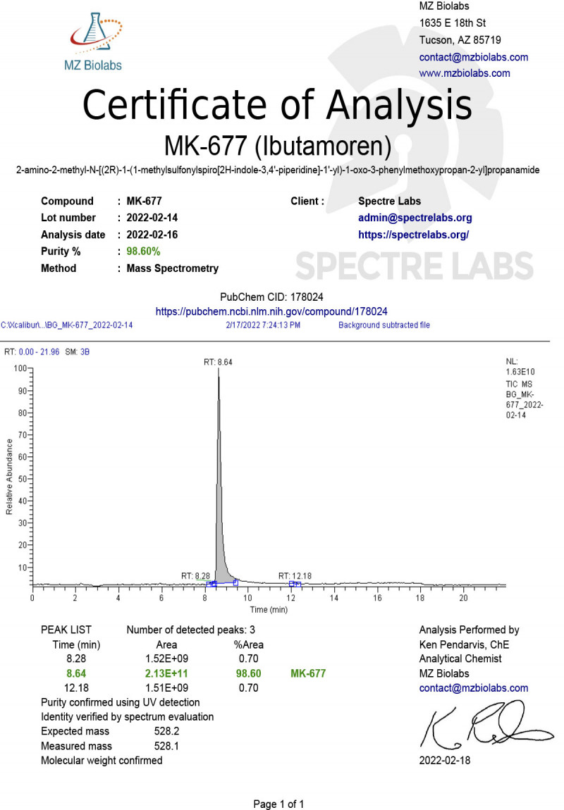 Ibutamoren (MK-677) - Lab test