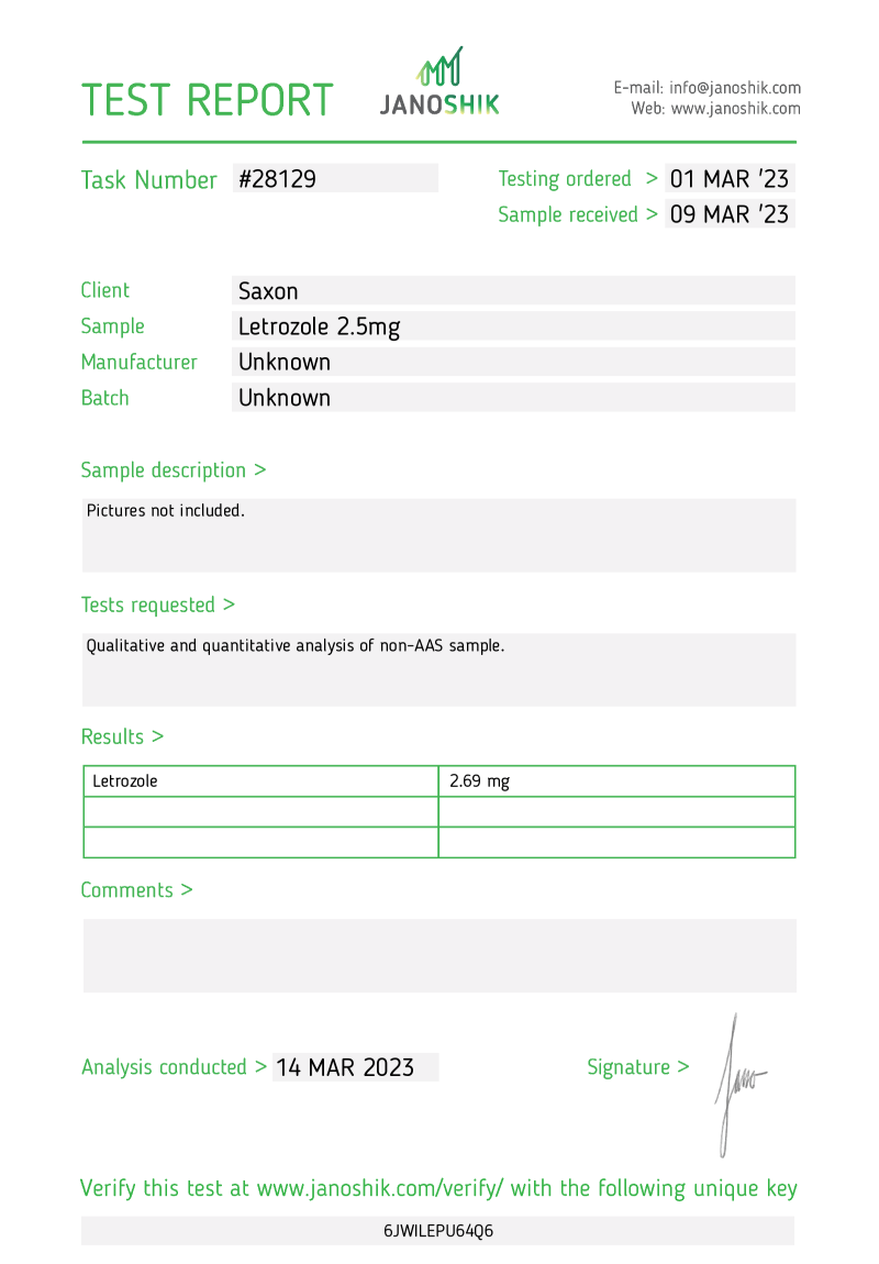 Letrozole 2.5 - Lab test