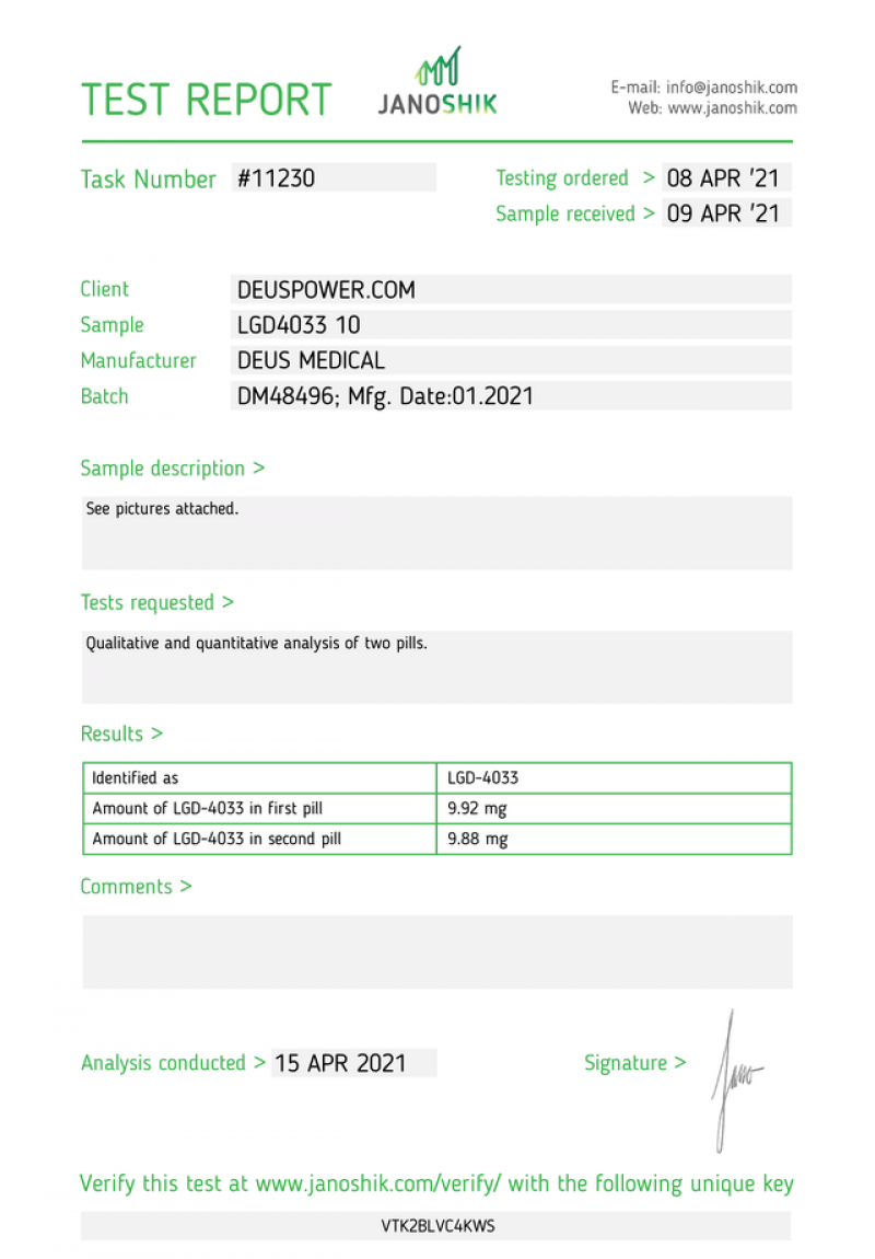 LGD4033 10 (Ligandrol) - Lab test