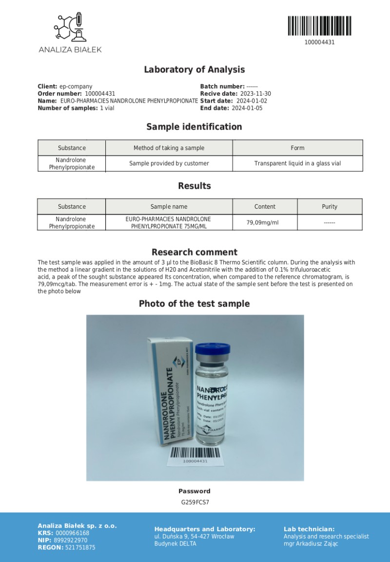 Nandrolone Phenylpropionate (15 ml) - Lab test