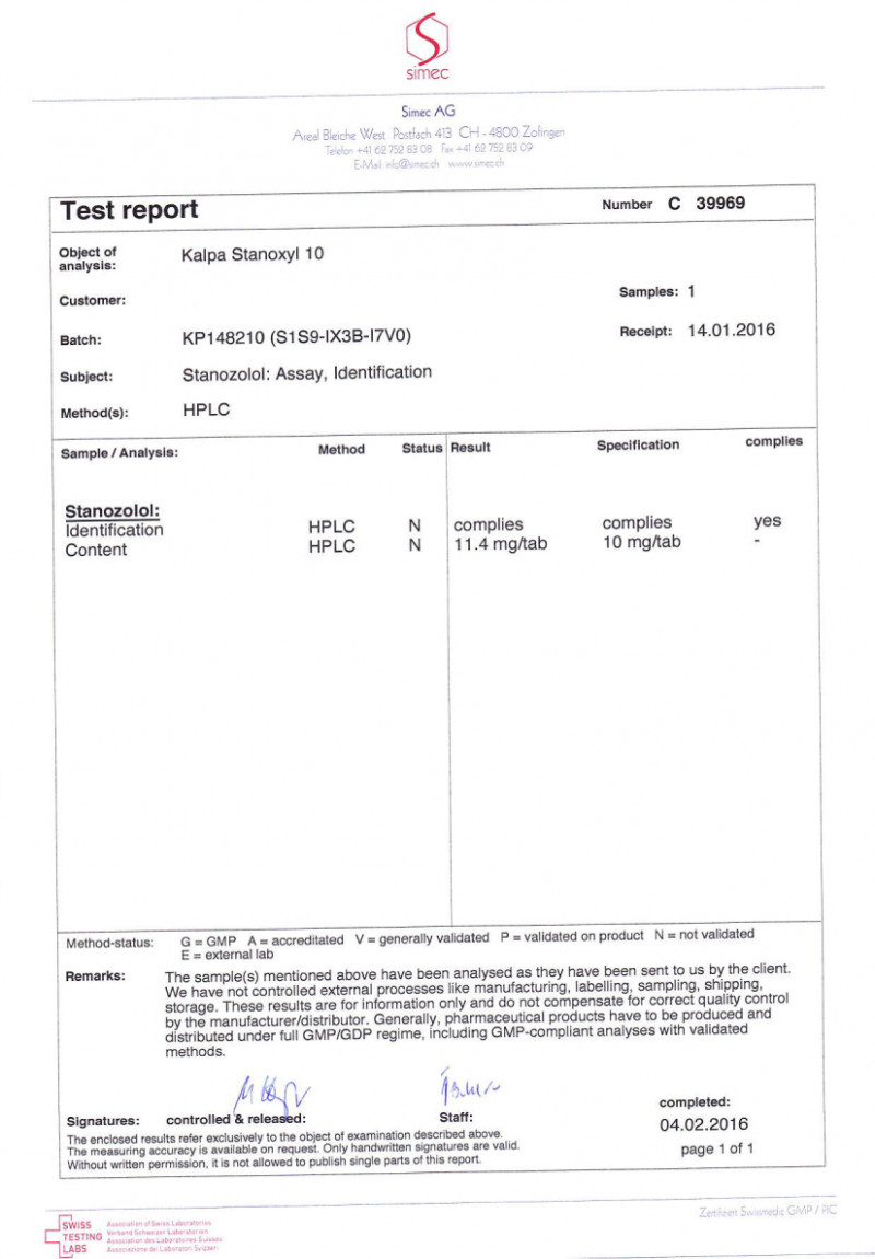 Stanoxyl 10 - Lab test