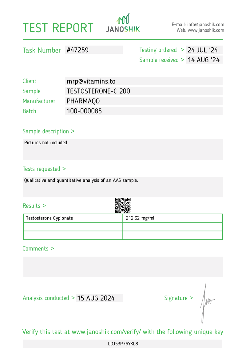 Testosterone-C 200 (Ampoules) - Pharmaqo