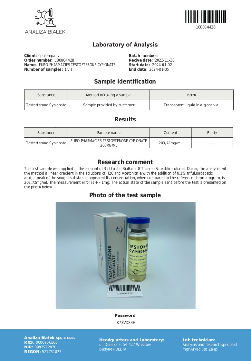 Testosterone Cypionate (15 ml) - Euro-Pharmacies - US