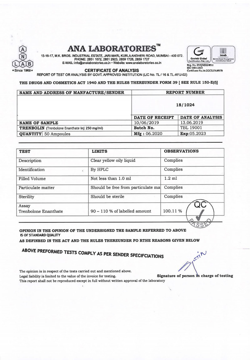 Trenbolin - Lab test