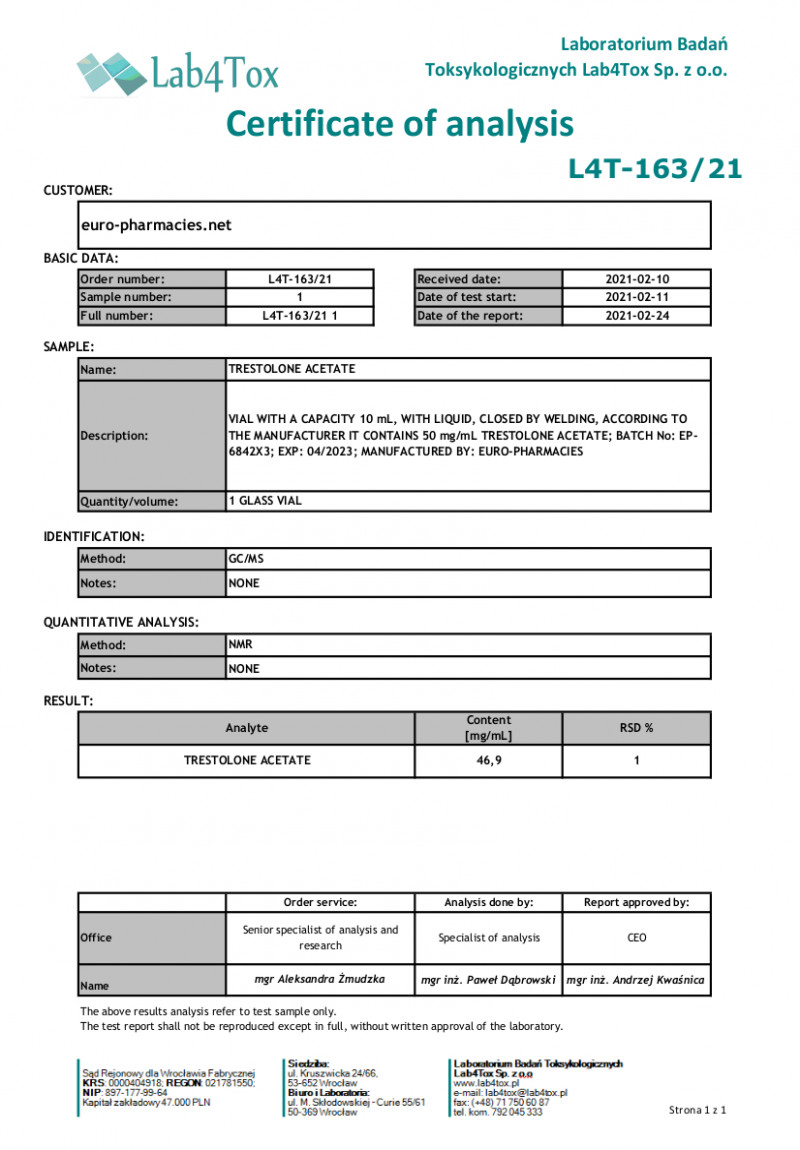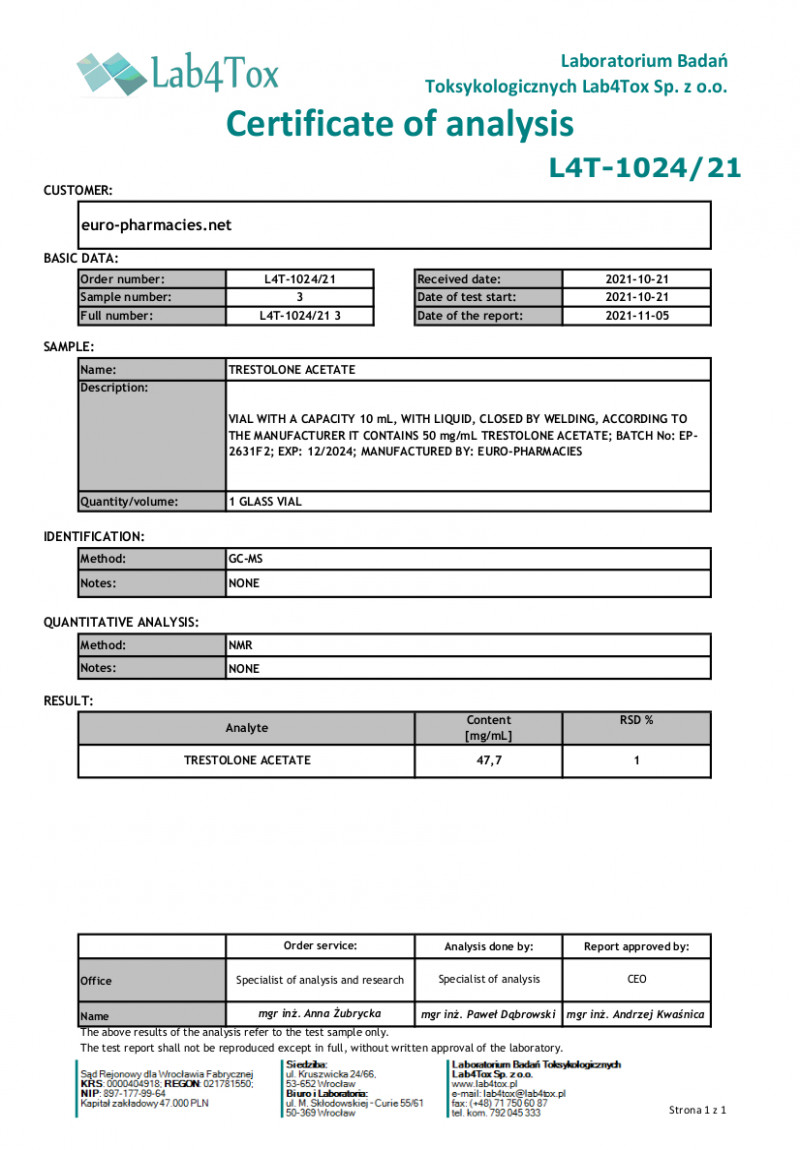 Trestolone Acetate - Lab test
