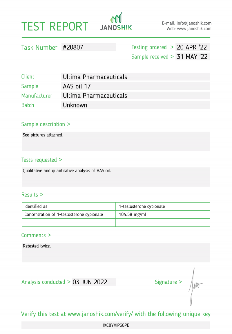 Ultima-1-Test Cyp - Ultima Pharmaceuticals