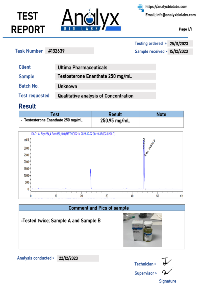 Ultima-Enan 250 - Lab test