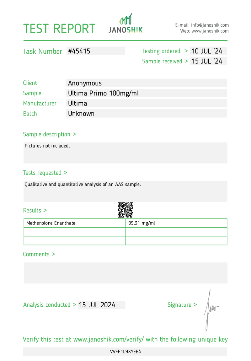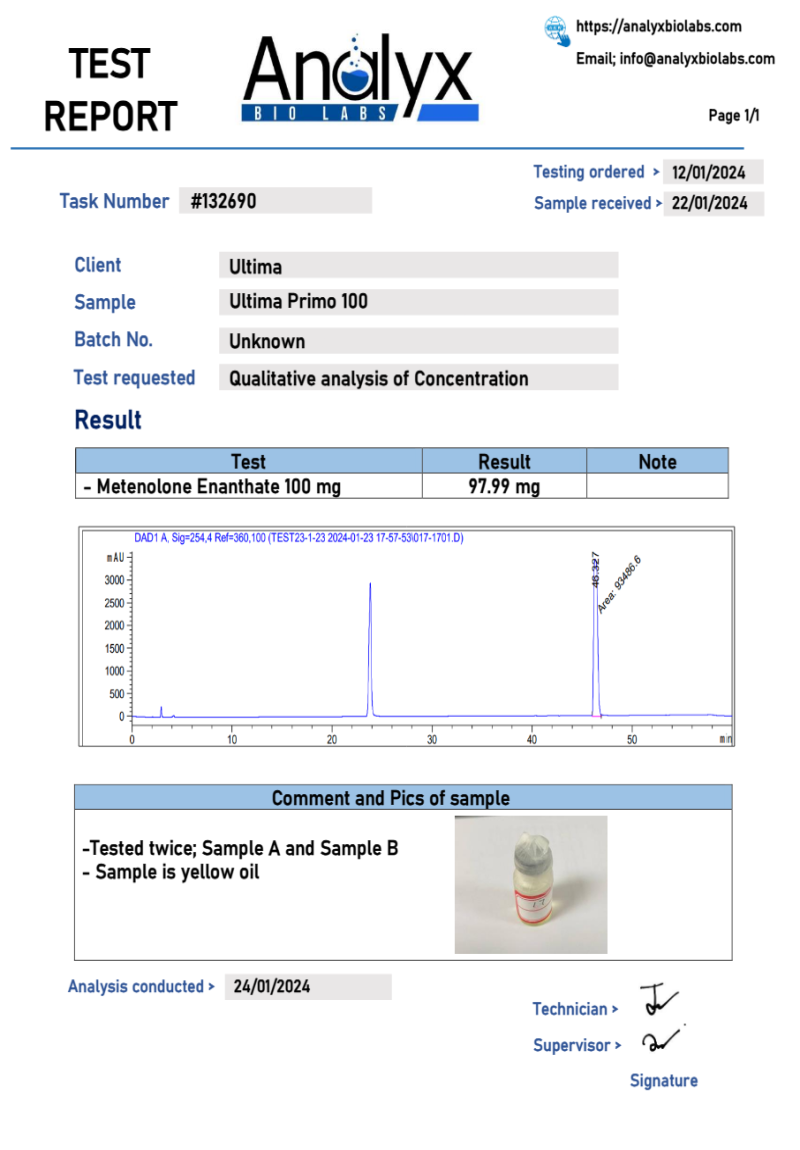 Ultima-Primo 100 - Lab test