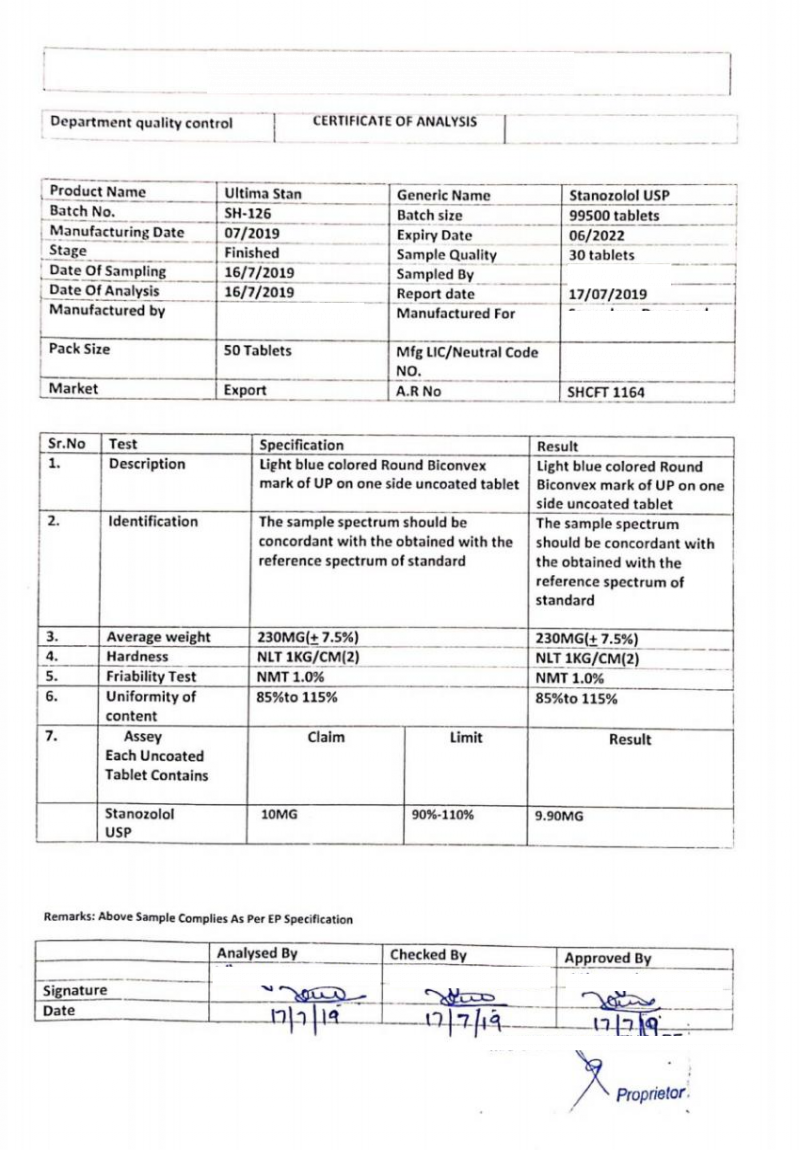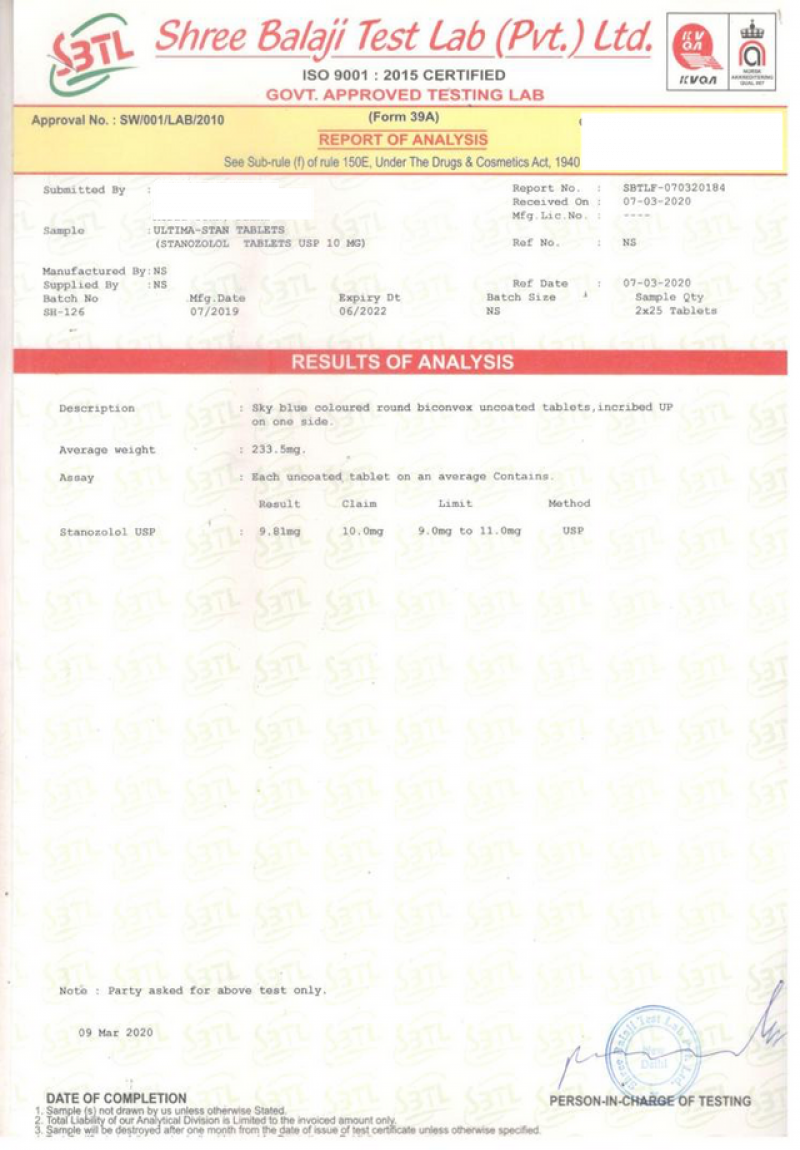 Ultima-Stan 10 - Ultima Pharmaceuticals - US