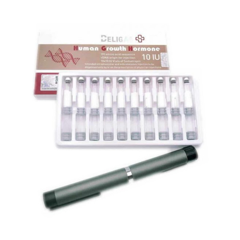 Human Growth Hormone stimulates the body cells to increase both in size, as well as undergo more rapid cell division than usual. In addition, it enhances the movement of amino acids through cell membranes and also increases the rate at which these cells convert these molecules into proteins. Clearly, you can see that this would amount to an anabolic (muscle building) effect in the human body. Human Growth Hormone also has the ability to cause cells to decrease the normal rate at which they utilize carbohydrates, and simultaneously increase the rate at which they use fats. Fat loss and lean mass increases with Human Growth Hormone have been found at a dose as low as 0.028 iu/kg/daily for 24 weeks. It also stimulates production of IGF-1.