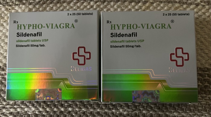 Tell your doctor what medications you take; certain drugs can interact with Hypho-Viagra resulting in serious adverse reactions.