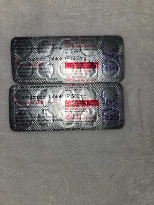 Works great for muscle spasms and pain. Will also help with sleep! Avoid driving or operating any machinery while taking these. Very effective & will definitely be ordering more!