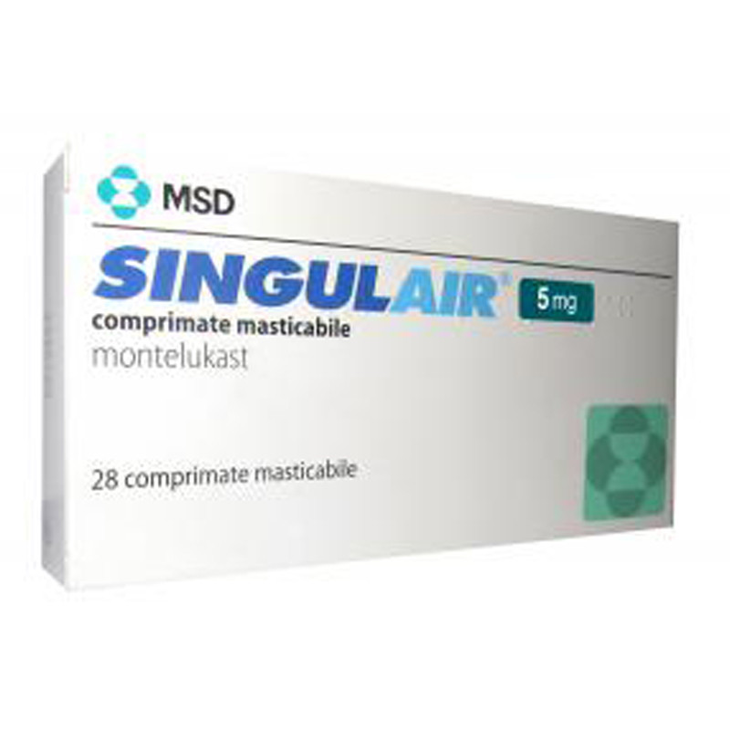 Singulair (montelukast) is a leukotriene (loo-koe-TRY-een) inhibitor. Leukotrienes are chemicals your body releases when you breathe in an allergen (such as pollen). These chemicals cause swelling in your lungs and tightening of the muscles around your airways, which can result in asthma symptoms.