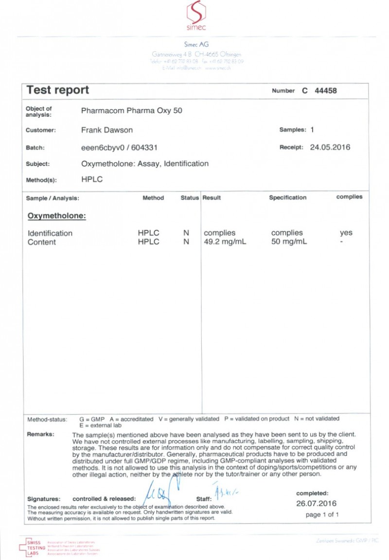 Pharmacom Labs managed to create the injectable version of this steroid. Thanks to the missing first pass through the liver it shows higher bioavailability (= efficiency) and lower hepatoxity as compared against the oral version.
