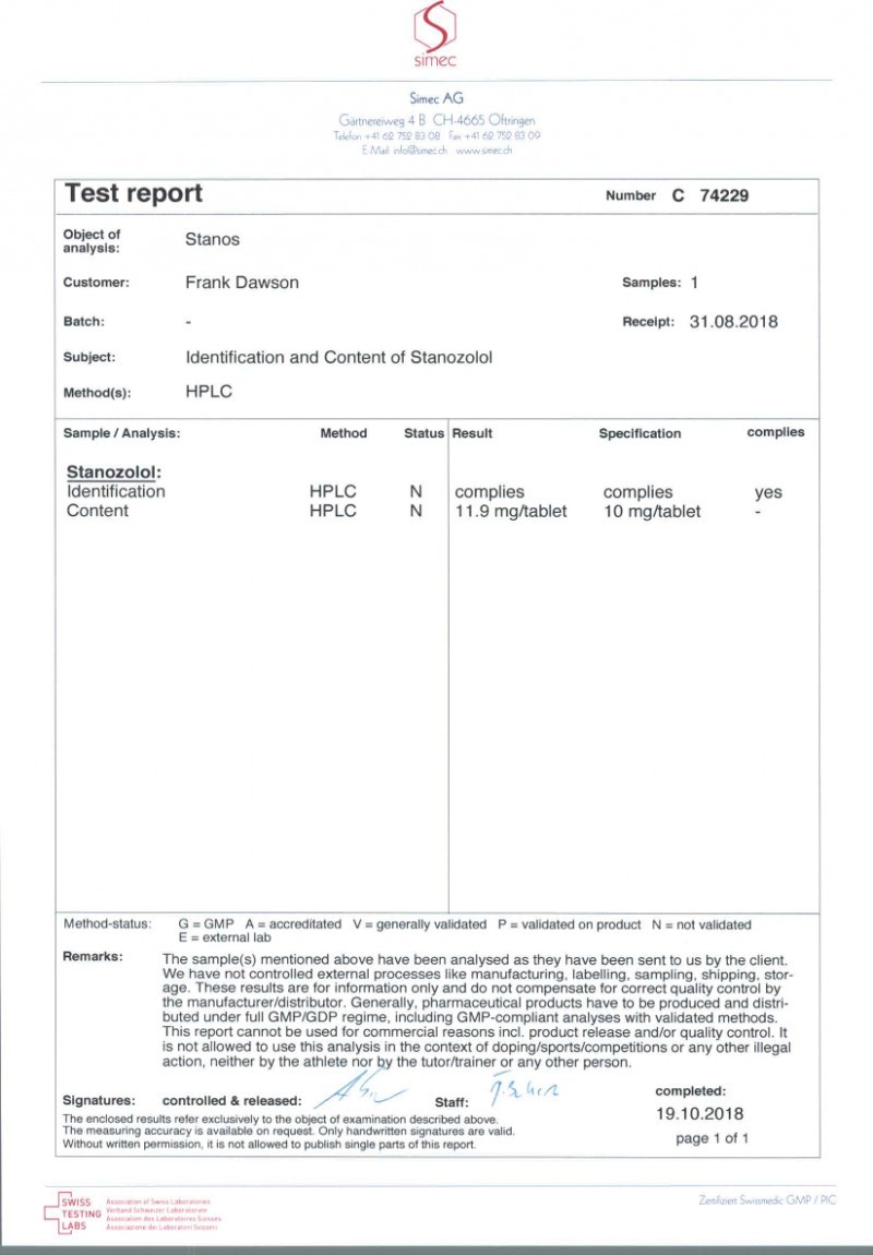 Now Stanozolol is produced for sale in two forms: tablets and injections. Stanozolol is the second most widely used oral steroid, succeeded in popularity only by methandienone. Stanozolol tablets have a short life time (about 9 hours) as compared against injectable Stanozolol. The injectable version of Stanozolol differs from other injectable anabolic steroids in being an aqueous suspension of fine particles of steroid, instead of being an oil solution of an esterified compound. For this reason, it has unusual pharmacokinetics which do not follow the classic half-life pattern. Instead, there is a sustained effect which slowly tapers. The duration of action is probably at least a week. Individual particles of Stanozolol may remain at the injection site for extended periods of time. However, Pharmacom Labs managed to create an oil-based version of stanozolol, which can be mixed with all other oil and has no flaws of the suspension. All three forms are characterized by good bioavailability.