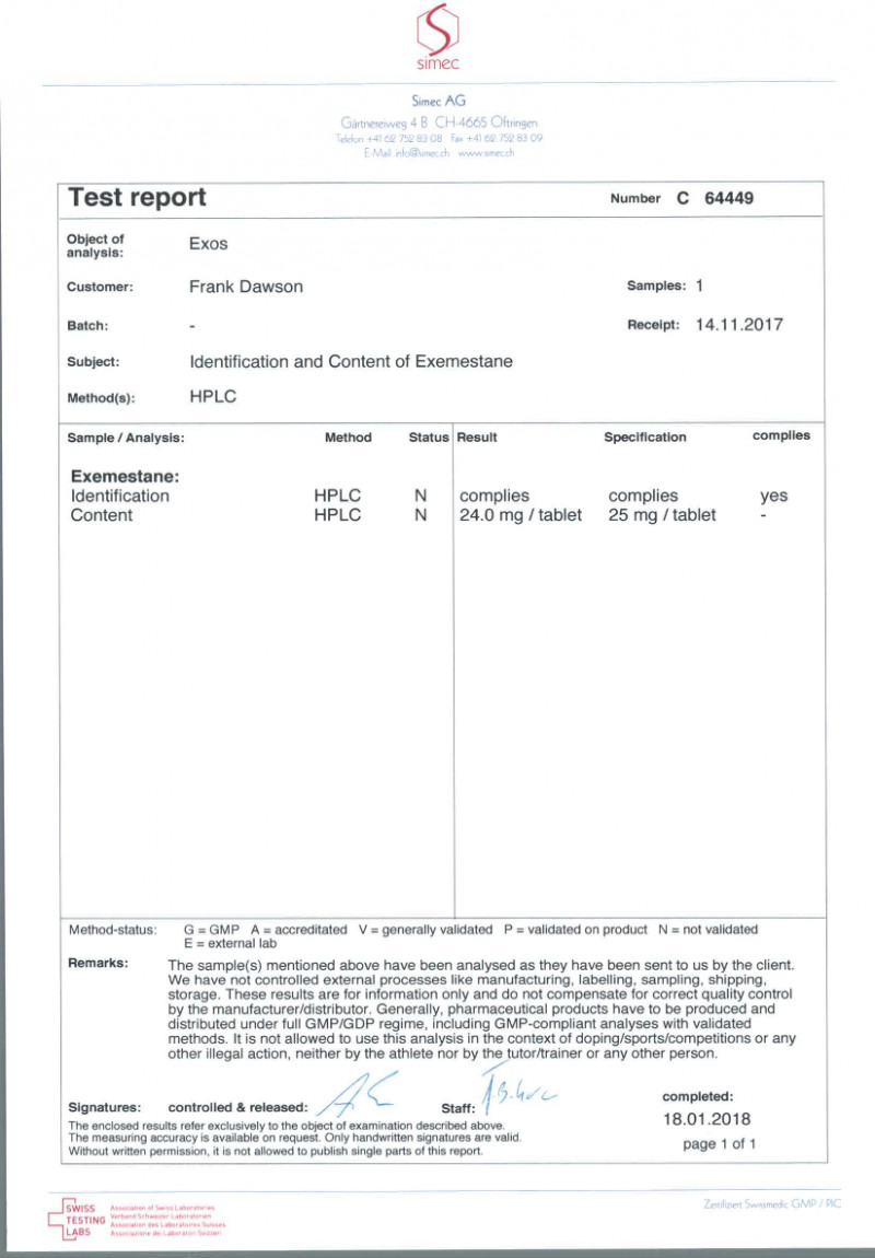 Exos can, in men, can increase the risk of cardiovascular disease occurring. Men who are concerned with their cardiovascular health should consider other anti-estrogen medications. Women using Exos for medical reasons may experience a host of side effects from hot flashes and upset stomachs to a number of bone related issues, high blood pressure, and birth defects in pregnant women. As a steroidal suicide aromatase inhibitor, some of Exos’s estrogen lowering effects can be long lasting as it binds irreversibly to estrogen converting enzymes.