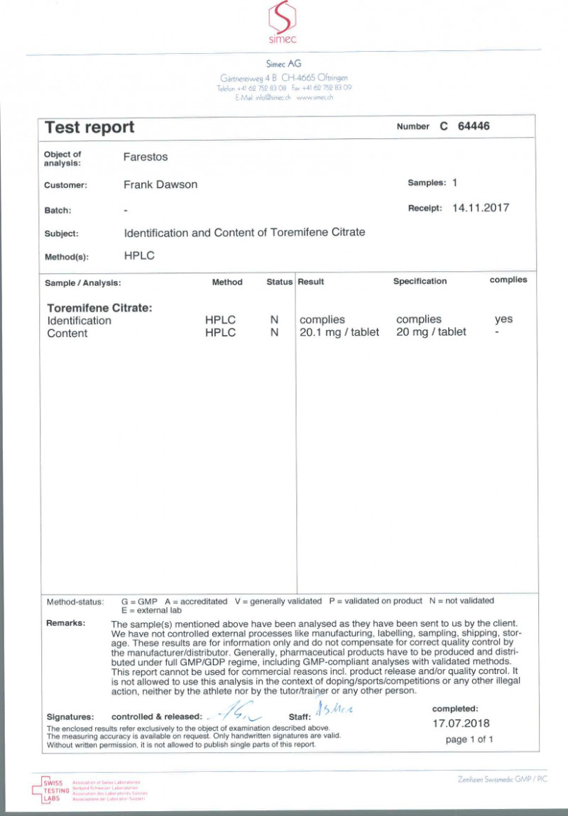 Farestos would also make a welcome addition to a cycle where Cholesterol issues may be a concern, or where something slightly stronger than Nolvadex may be required to prevent gyno.
