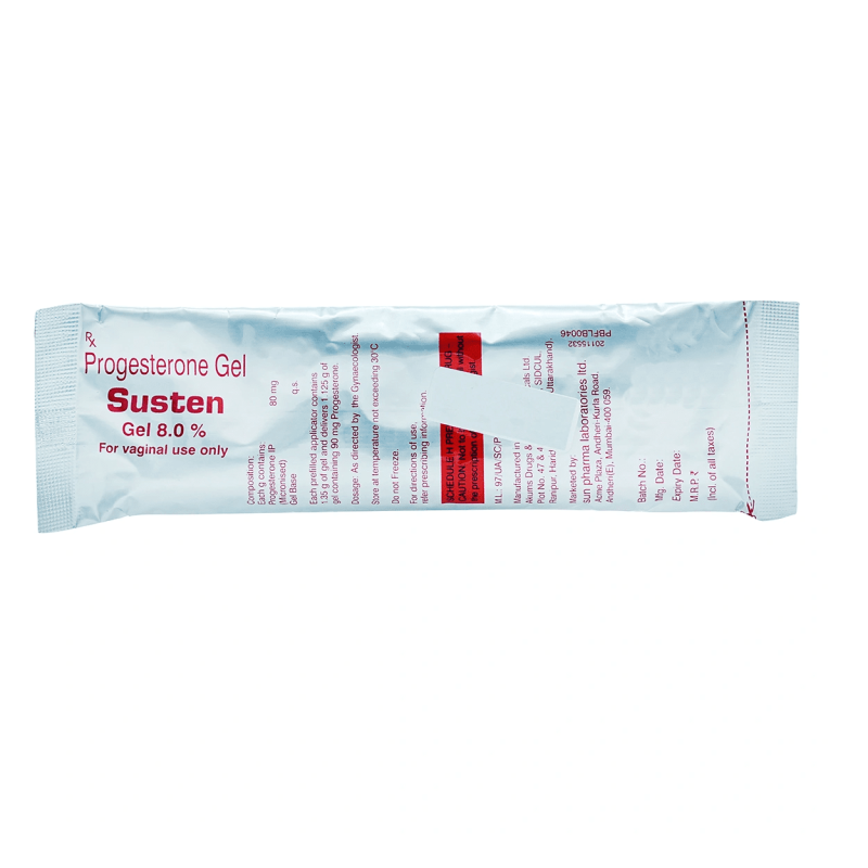 Susten 8% Gel is a progesterone (female hormone). It helps to establish and maintain pregnancy. It also prevents the increase in thickness of the endometrium (lining of the uterus) caused by estrogen.