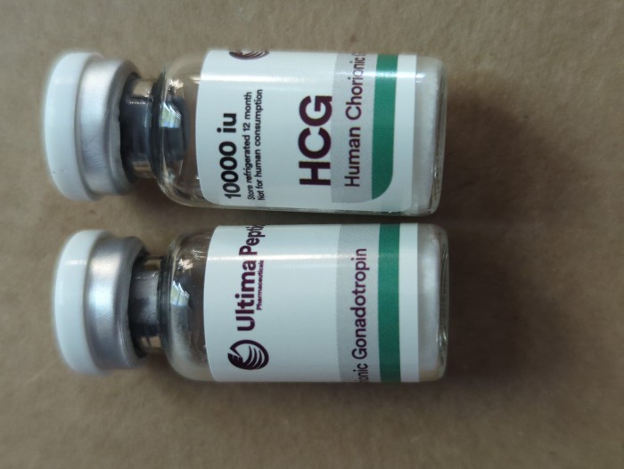 HCG 10000iu is an injectable drug manufactured by Ultima Pharmaceuticals and containing as active substance Human Chorionic Gonadotropin (hCG). This is a hormone produced during pregnancy that is made by the developing placenta after conception, and later by the placental component syncytiotrophoblast. One of the uses of hCG is to suppress hunger and trigger the human body’s use of fat for fuel. hCG is used also to cause ovulation and to treat infertility in women, and to increase sperm count in men. bodybuilders use it in steroids cycles and in post cycle therapy to lose gain and to increase Testosterone production.