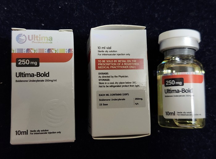 Ultima-Bold cycle for “chemists” – 8 weeks by taking 600mg per week of Ultima-Bold + 100mg every other day of Ultima-Prop + Winstrol 40mg per day.