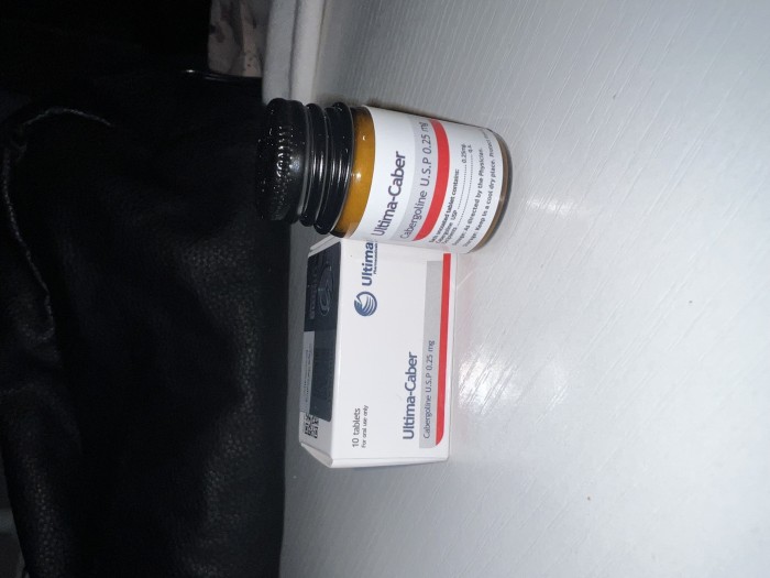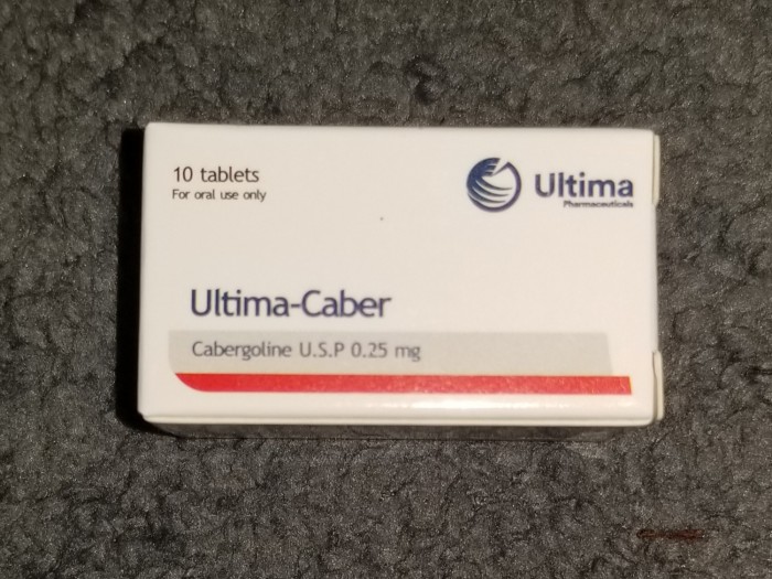 First time using Ultima Caber and it is working like no other. I am prone to gyno and this is a miracle! Using in combination with Ultima Nolva 20mg. 1 Tablet of Caber every 3-days, 1 Tablet of Nolva every day for 30 days completely resolved my issues. I will always have this on hand.