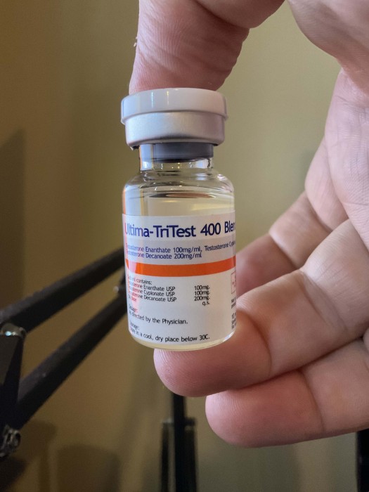 Service and delivery were phenomenal - never worry about that with OSGear. Been running the Tri-Test for about three weeks now. Been pinning .4ml every other day sub-Q. First pin I didn't warm the bottle and had very minor PIP (bit of swelling). Subsequent were warmed in a cup of warm water prior to pinning with zero issues. That was my fault - should have expected it with more than 300mg. Got my monthly bloodwork done. Prior was Cyp 250 .4ml every other day. Prior was 1400 total and 390 free. Latest is 1750 total 460 free. Solid product, smooth pin, no PIP... just warm it up first!