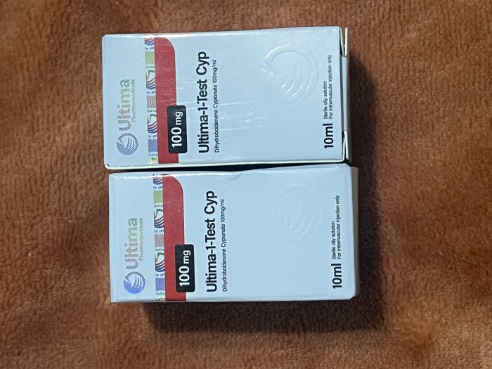 This is Ultima DHB 1-Test Cyp is some amazing stuff. I was skeptical about buying some because I’ve heard that it was heavily faked and also halving some extreme PIP. I’ve been pinning 50mg EOD with Testosterone in my delts and I haven’t had much PIP at all. Maybe some slight pip the very first injection but after that I haven’t had any at all. Nothing any different than the usual. I’ve been taking this Ultima DHB for 5 weeks now & I’ve noticed some major gains in my strength and aggression in the gym. I’m excited to see where the next few weeks take me as far as gaining some muscle mass. I’m already starting to fill out and look fuller. I highly recommend anything from Ultima! They will always be my favorite brand to run.