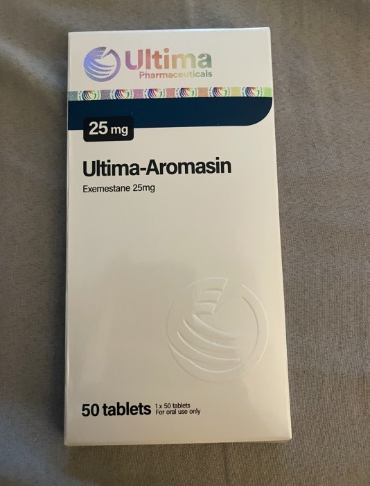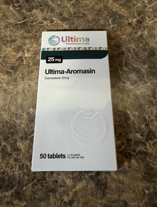 Ultima-Aromasin generally comes in tablet form with about 25 mg of the drug present and is widely available in most pharmacies both in the US and abroad under that name.