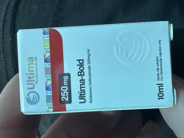 Ultima-Bold cycle for “chemists” – 8 weeks by taking 600mg per week of Ultima-Bold + 100mg every other day of Ultima-Prop + Winstrol 40mg per day.