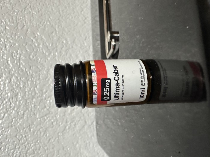Another high quality product from ultima pharmaceuticals, took one pill a week .25mg when I noticed my prolactin levels rising and it completely reversed the effects. It also helped with ED support when cycling Deca, I would highly recommend this product to anyone who is prone to high prolactin levels when cycling deca or tren.