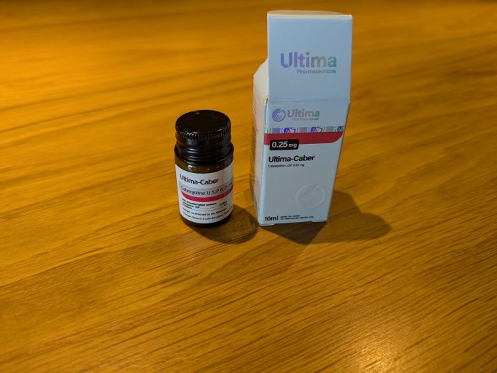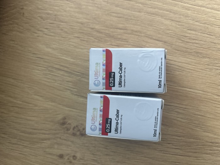 Ultima Pharmaceuticals Caber 10 pills x 0.25mg each 19 Aug, 24