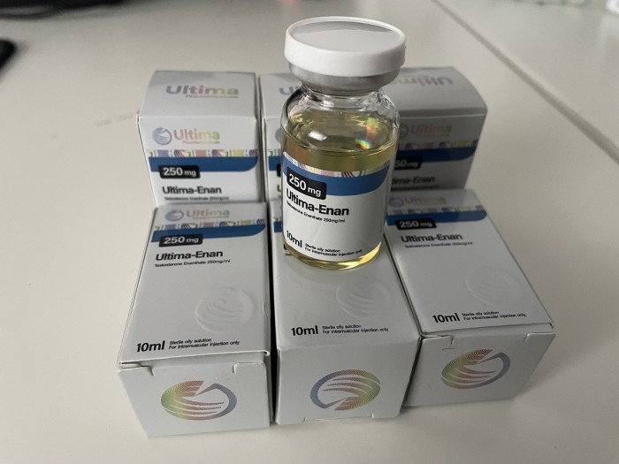 Ultima-Enan injections stimulates regeneration processes in the body. Testosterone Enanthate improves the overall tone, gives the desire to train, as well as increases the oxygen capacity of the blood.