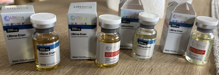 I have been able to use the Ultima Enan 250 for an extended period of time now. I can honestly say this has been one of the best UGL tests I have used. Always feel great on it, get amazing gains while using it and from bloodwork I have been able to see that it gives me the same numbers as the prescription pharma test I use for TRT. Will continue buying for a long time.