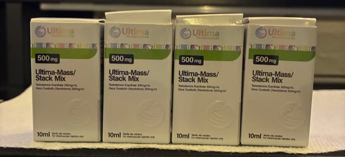 This is the Ultimate combination for Mass, size and strength - Testosterone Enanthate and Nandrolone Decanoate. 300mg of Test and 200mg of Deca, either shoot this twice or three times per week spaced evenly apart. All you need to add is an oral such as Dianabol or Anadrol 50 and you can achieve anything you want! I like to use this version because the oil volume is so minimal, and because its premixed there is no messing about measuring multiple doses from 2 vials. Its also more cost effective than buying them separate and if you want to add another compound such as trenbolone its very easy to do so. Ideally shoot it in a larger muscle group such as Glutes, back, quads and not shoulders or biceps as you may get some irritation with it being higher concentration.